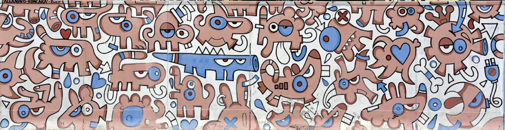 Il mio murales è un omaggio per ricordare le 32 creature che non ci sono più. Se riuscite a vedere all’interno del pannello c’è una creatura di colore diverso perché è l’unica sopravvissuta.