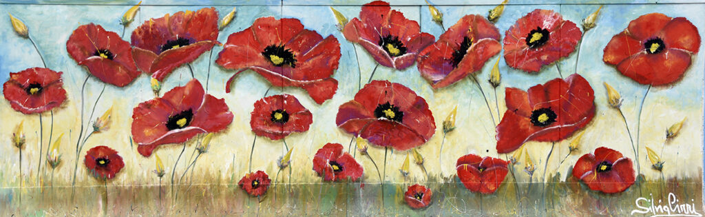 La amapola es una flor que en la cultura anglosajona está históricamente relacionada con los caídos en la guerra. Hoy en día, la amapola debe encontrar la fuerza para convertirse en un símbolo de renacimiento y no más de caída, dando vida a una nueva primavera.